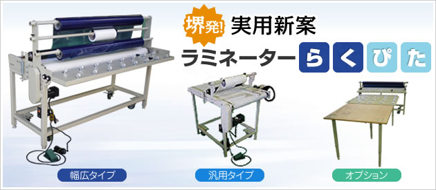 弊社オリジナルの主力商品である、ラミネーター(保護フィルム貼り機)「らくぴた」の実機を用意し